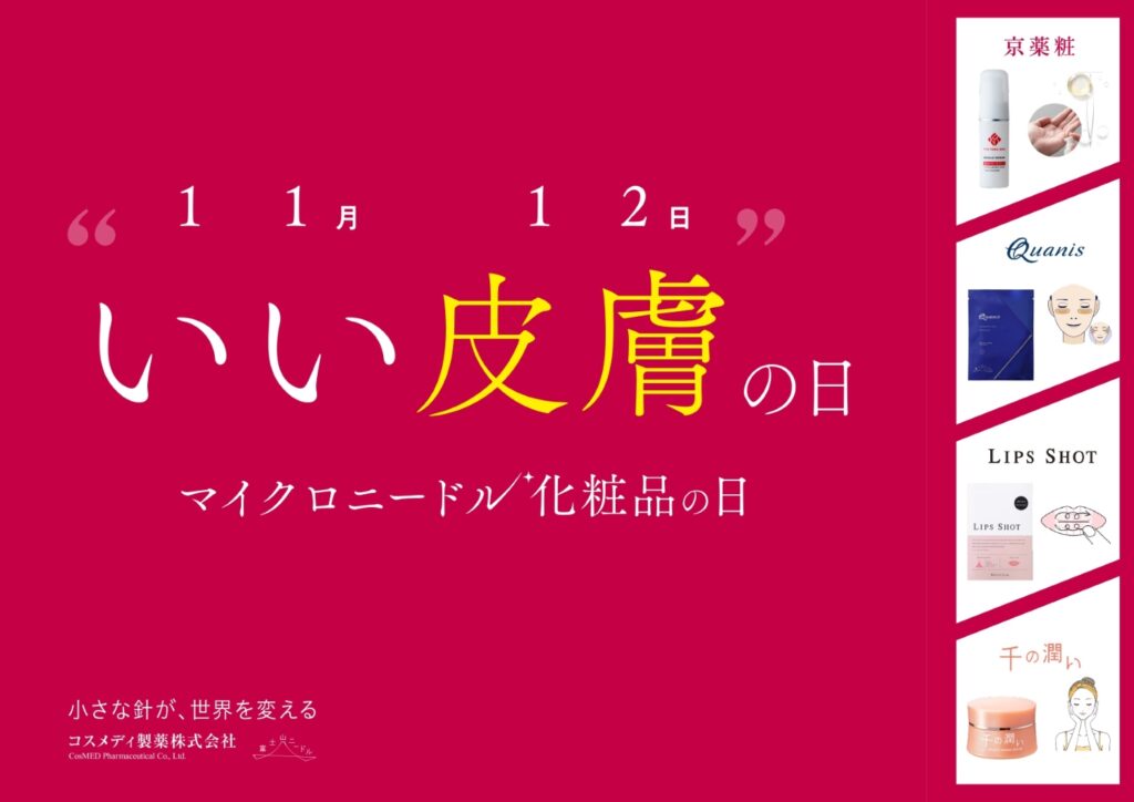 私たちのマイクロニードルは「浸透しにくい美容成分を肌の中※2に直接注入する」という革新的な経皮吸収技術として、美容業界に新たな「マイクロニードル化粧品市場」を創り出しました。コスメディ製薬はこの記念すべき11月12日に、特別企画として店舗イベントとオンラインキャンペーンを同時開催します。