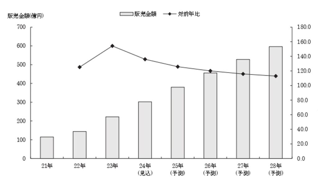 2023年の市場規模は54%増の222億円と大幅に伸長
