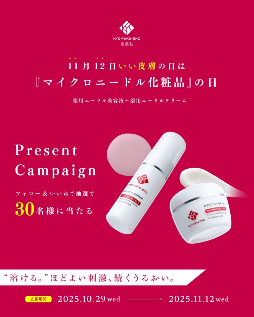 - 抽選で30名様に!“溶けるニードル”スキンケア『京薬粧シリーズ』をプレゼント!
