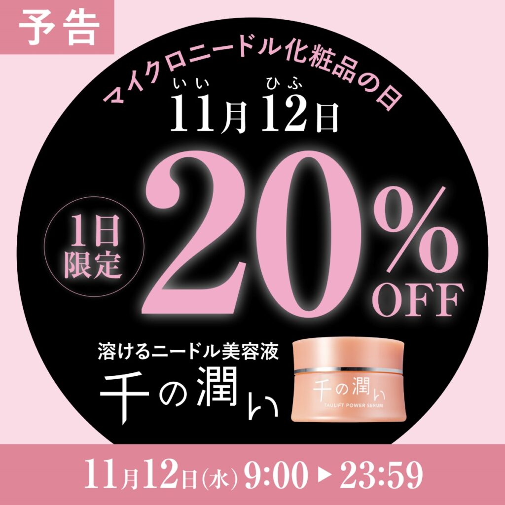 『千の潤い』を記念日限定、オンライン特別価格でご提供します。ぜひ「マイクロニードル化粧品の日」からタウリンニードルスキンケアをスタートしてください!