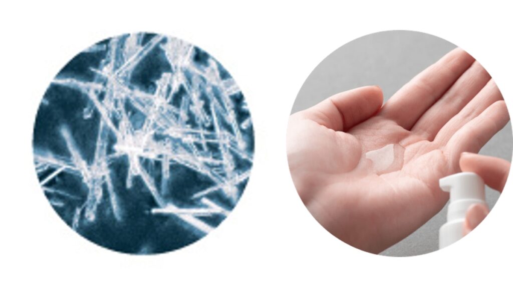 【技術1】美容成分タウリン※3を結晶化して「溶けるニードル」にする