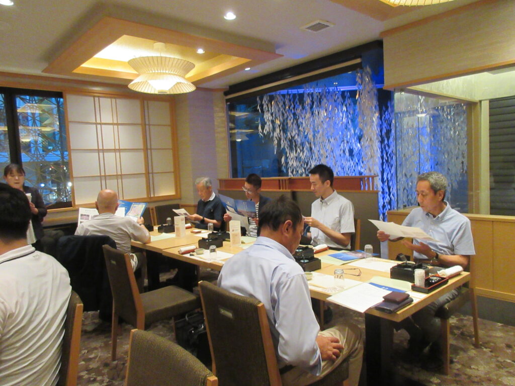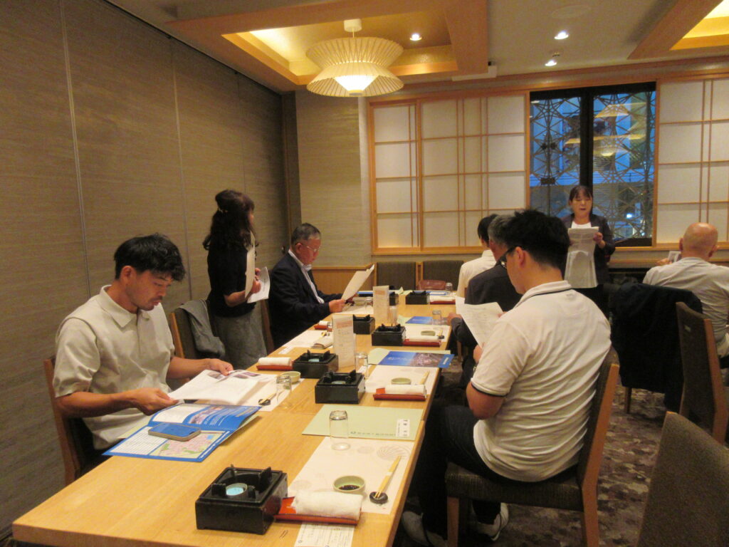 夕食会場では、熊本南工業団地の理事長、事務局長に、熊本地震からの復興と連携事業継続力強化計画についてお話を伺いました。
